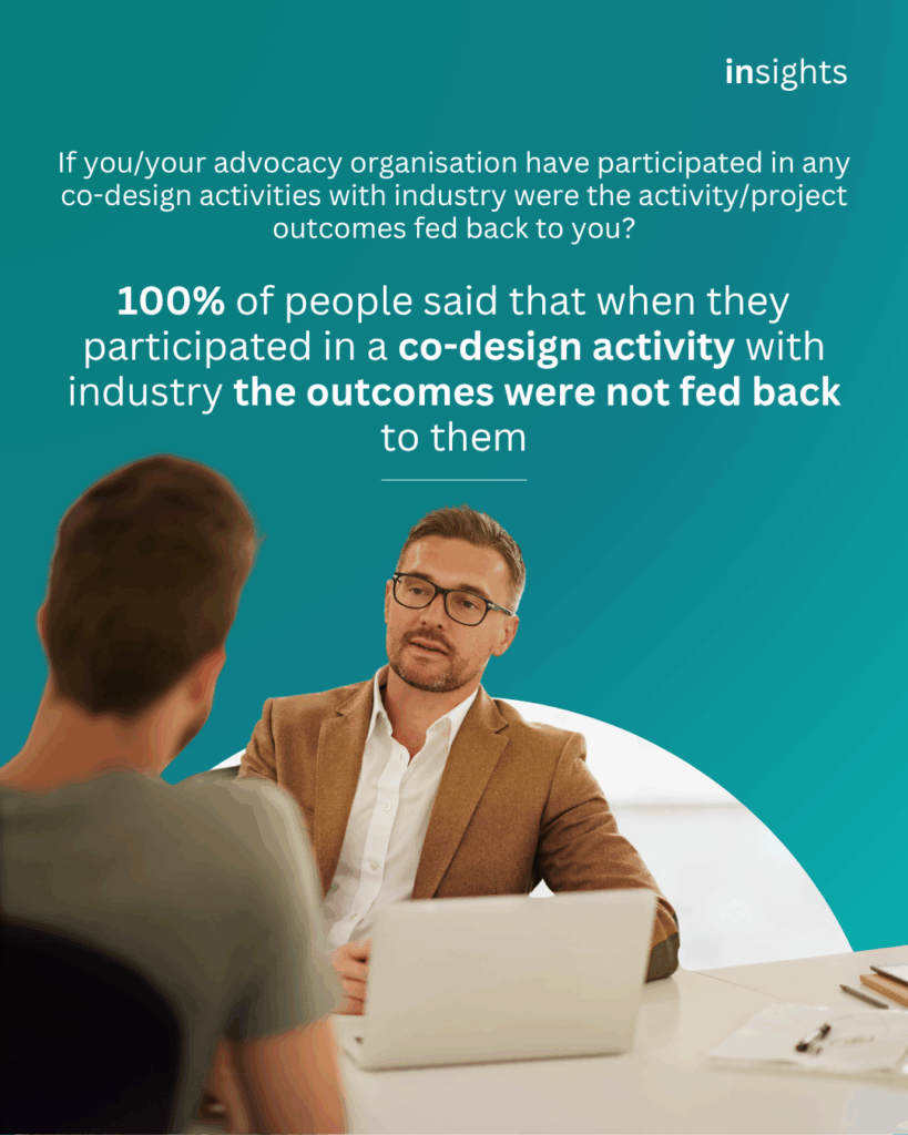 If you/your advocacy organisation have participated in any co-design activities with industry were the activity/project outcomes fed back to you?
